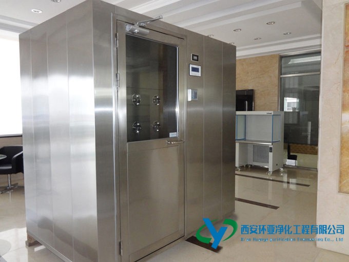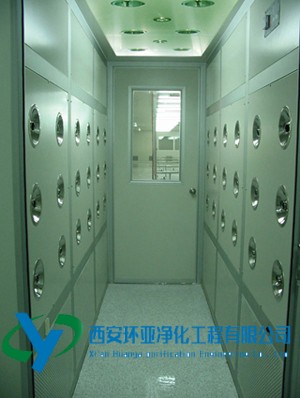風淋室是人進入潔凈室所必需的通道,它可以減少進出潔凈室所帶來的污染問題,減少由于人貨進出帶來的大量塵埃粒子由潔凈室的入口處安裝功能齊全的“氣閘室”可以減少空氣污染微粒的數量,當人貨通過風淋室時,污染微粒被經過高效過濾的高度潔凈空氣射掉,25m/s以上的高風速確保了有效的噴射和飄移微粒經過初效和高效兩級過濾器基本過濾掉。為了保持風淋的安全使用,維持潔凈室環境的潔凈度